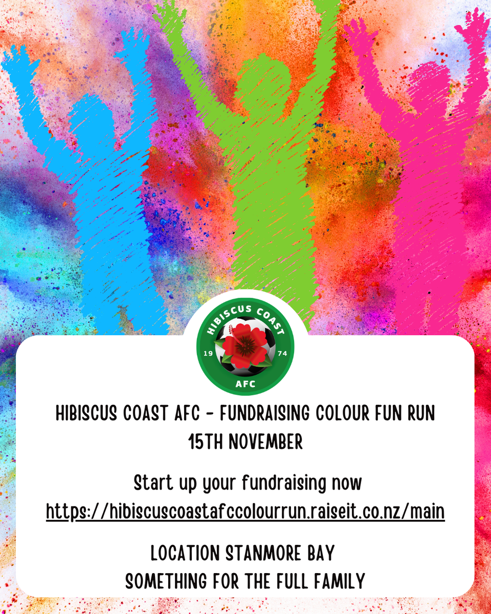 We’re excited to announce the 2025 Hibiscus Coast AFC Colour Run – Online Fundraiser! ?⚽
